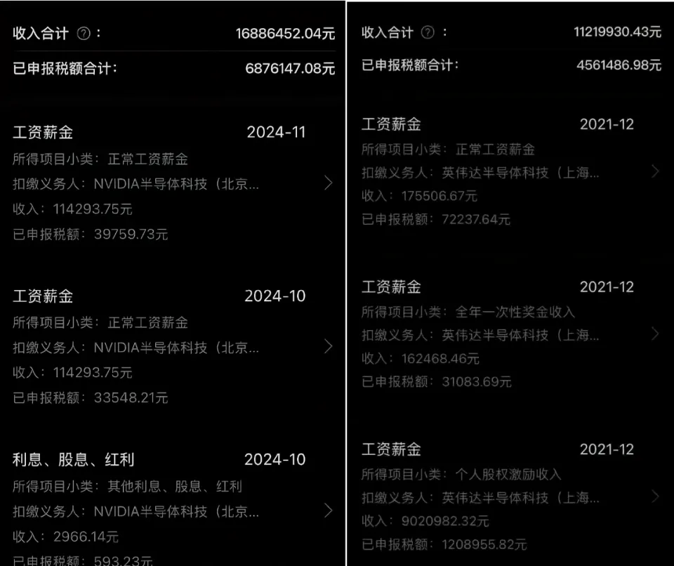 按照公开信息,2021年7月和2024年6月,英伟达先后进行了“1拆4”和“1拆10”,这意味着在2021年获得公司100股股票激励(当时价值超过7.5万美元),如果一直持有至今,这笔股票激励将超过80万美元。