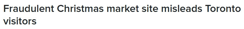 圣诞节日前,一个伪装成“多伦多圣诞市集”(Toronto Christmas Market)的诈骗网站近期在 Google 搜索结果中排名第一,引发市民的警觉。