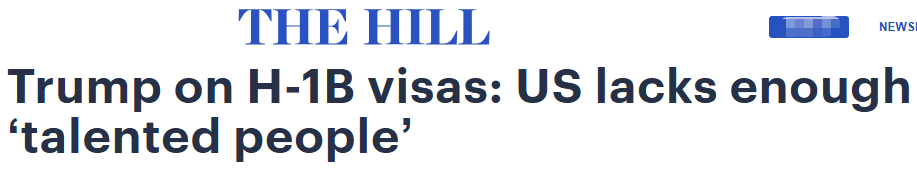 总统川普在一场新的采访中为引进外籍劳工、学生签证和H1B政策进行辩护,称美国缺乏具备“特定才能”的人来从事某些工作。
