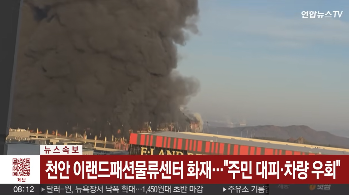 韩国忠清南道天安市衣恋集团(E-LAND)物流中心15日清晨惊传大火,浓浓黑烟笼罩周围区域,烈焰狂烧近10小时才扑灭,所幸3名值班员工及时逃生,无人伤亡。