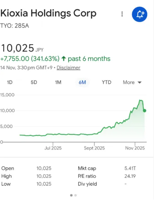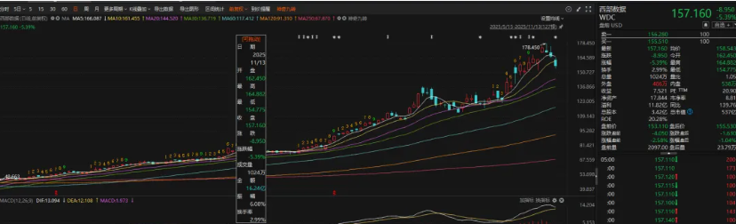 周四东京交易时段,铠侠控股股价仅下跌1.62%,但其美股ADR暴跌引发美股存储板块连锁反应。11月13日,西部数据跌5.39%、希捷科技跌7.31%、美光科技跌3.25%。