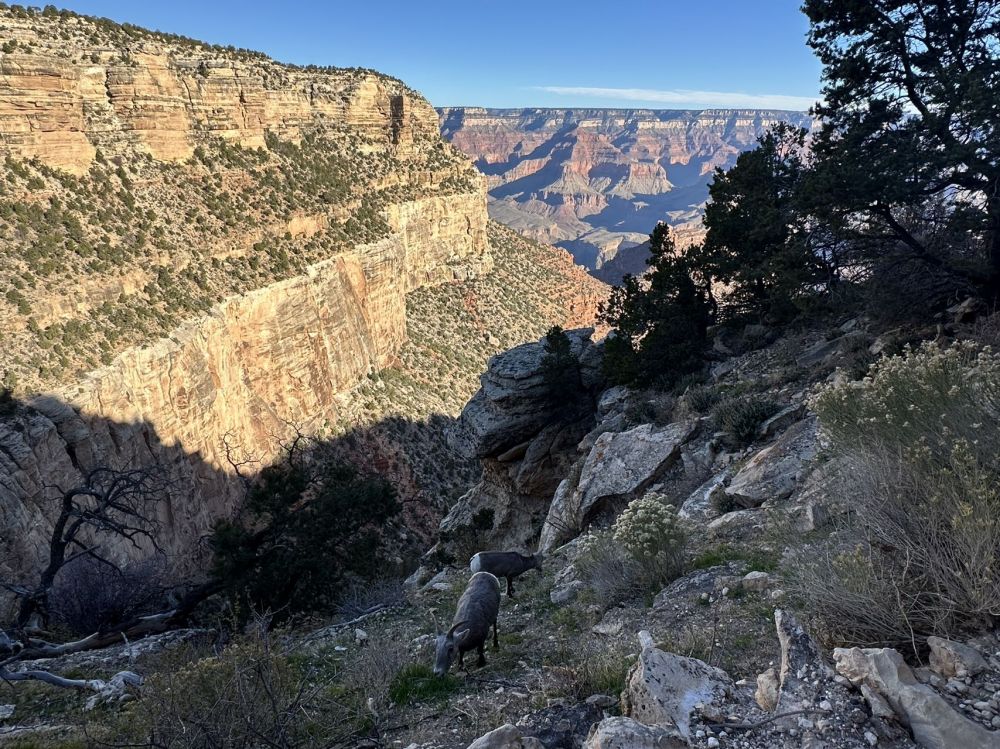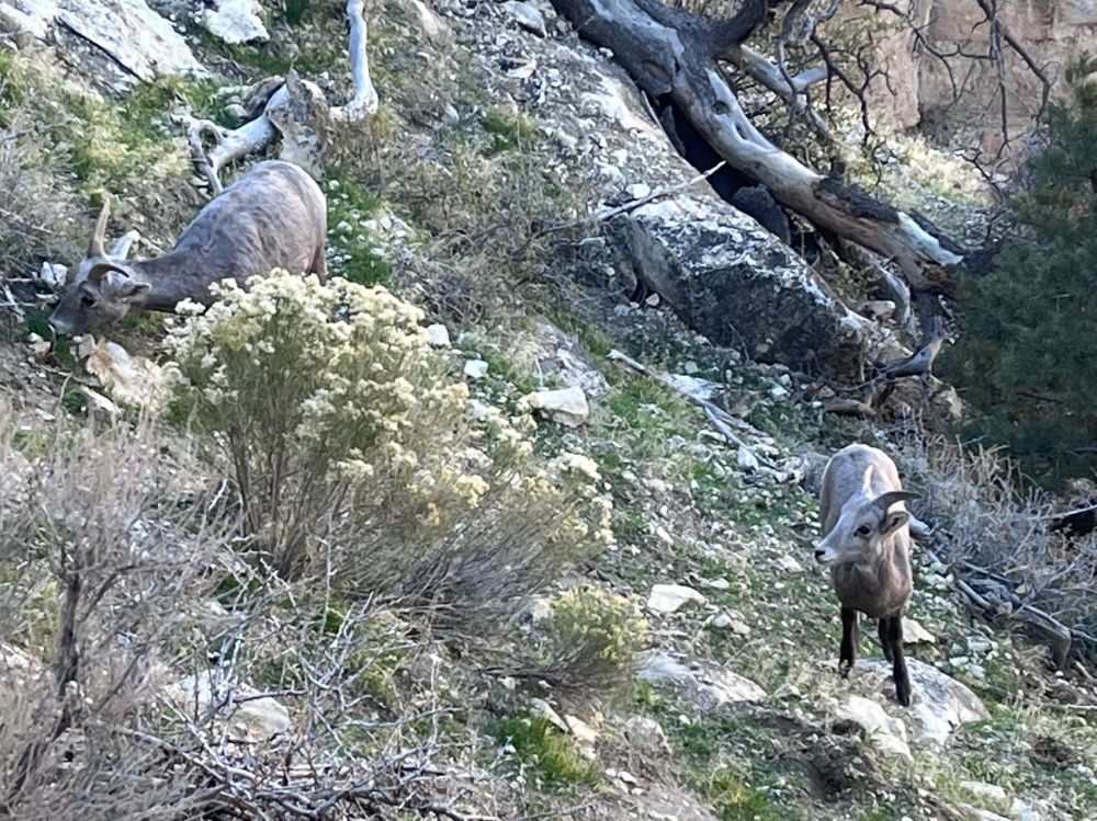 刚开始下坡就看到了山羊和有着长长的弯弯的角的羚羊。感受一下这只有羊才能站的住脚的坡度!