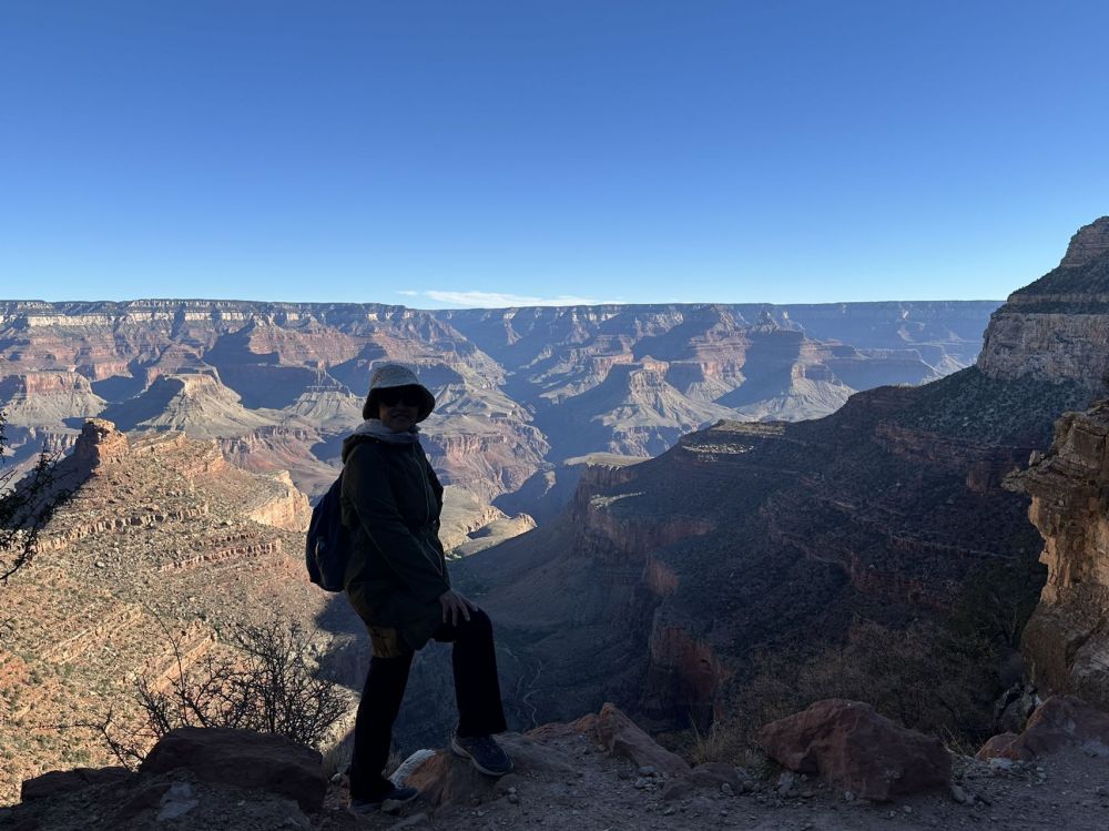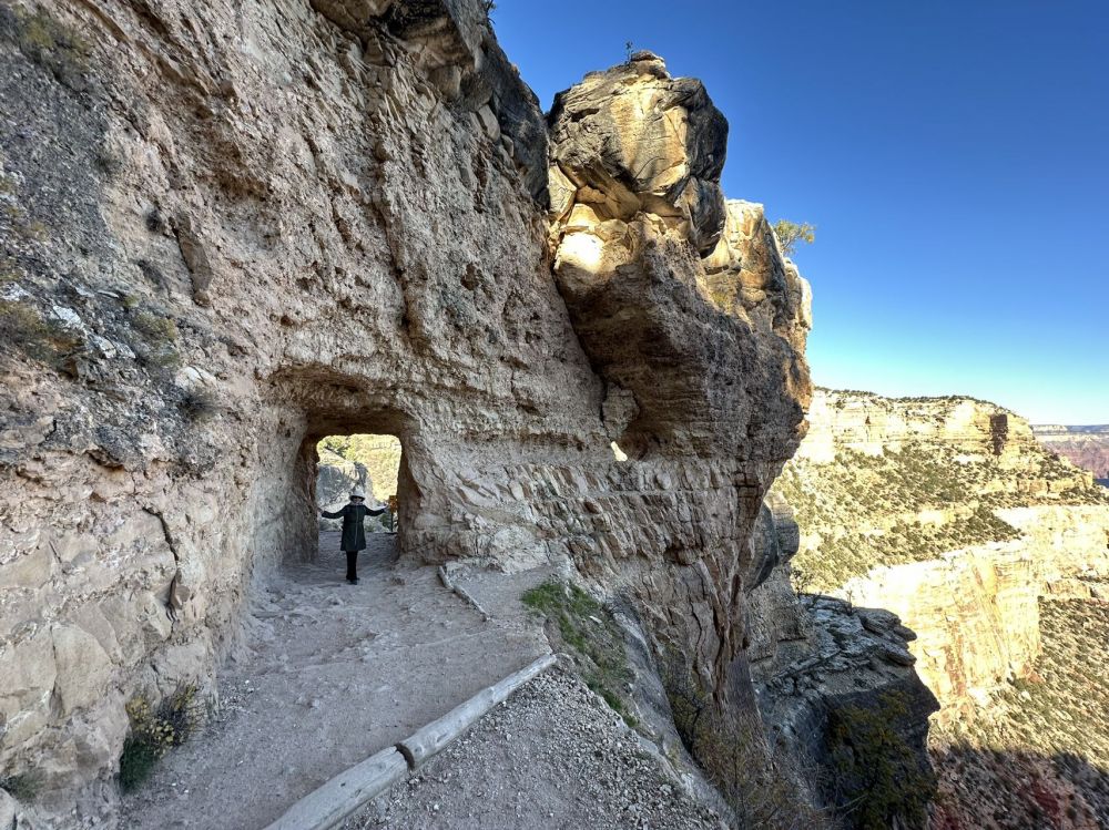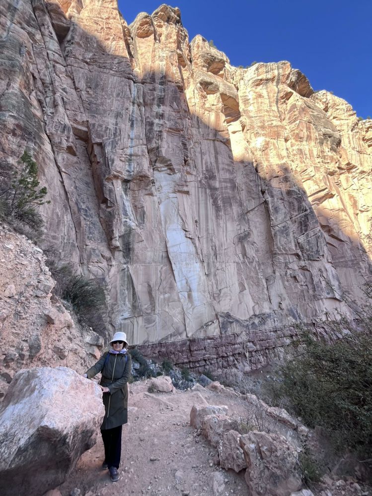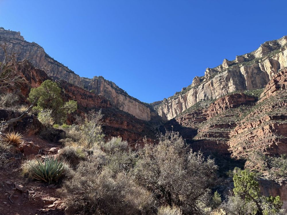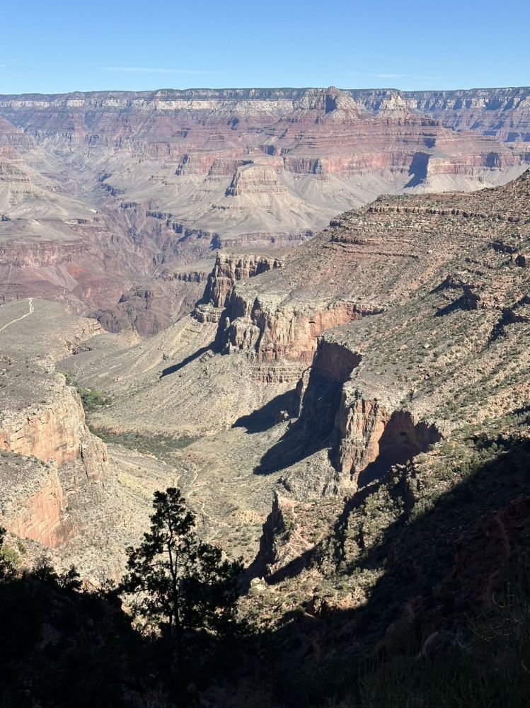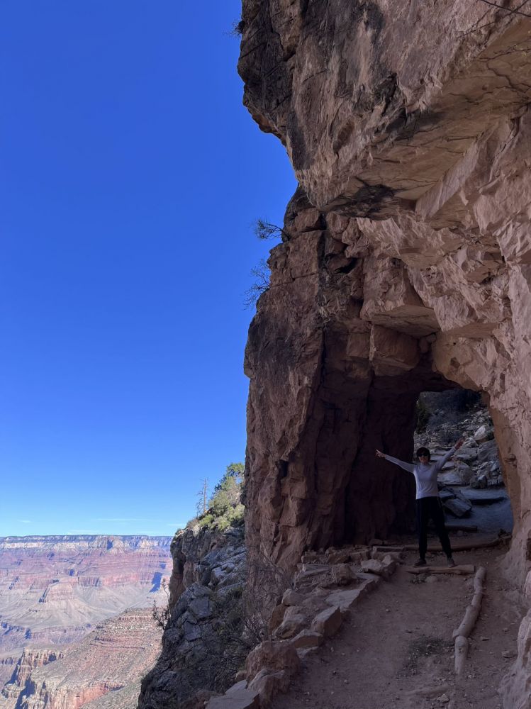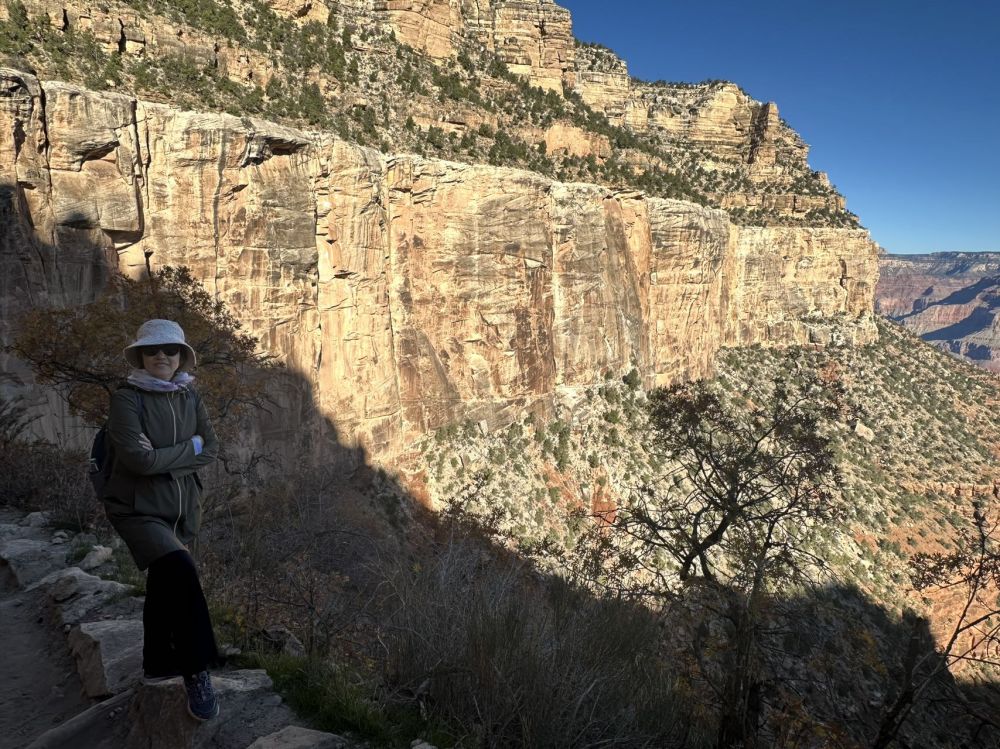 古人云:“欲穷千里目,更上一层楼。”如果同一位诗人与大峡谷相遇会不会说:“欲探百里深谷,且下三里崎岖!”第一天,看罢日出,吃完早餐,咱们完成了Bridget Angel Trail的三英里trail,a tremendous milestone!这基本上是徒步素人可以走的极限了,往返6英里/10公里,下降海拔高度650米左右。