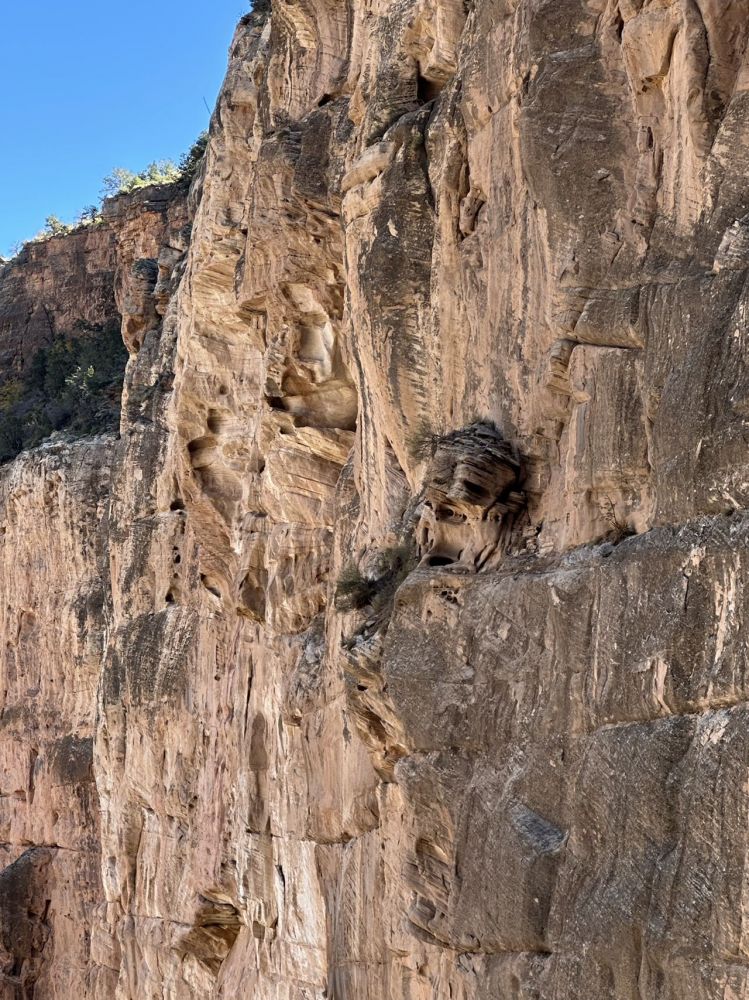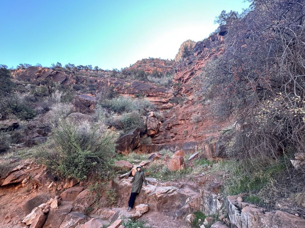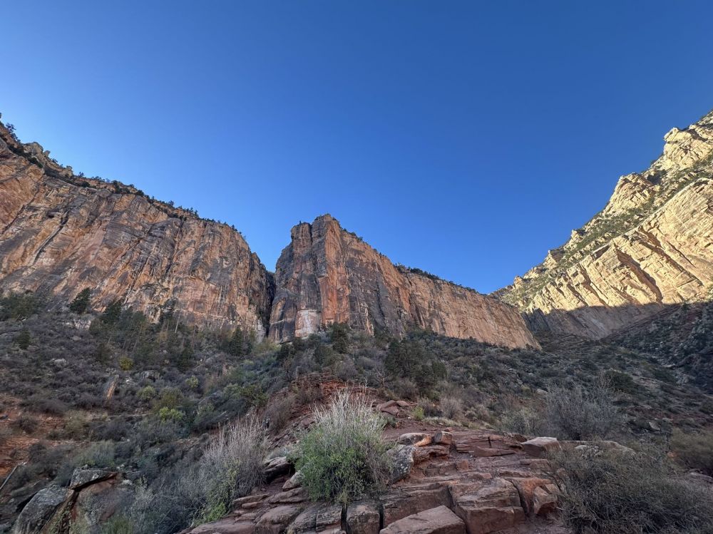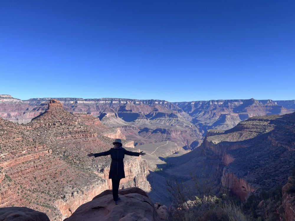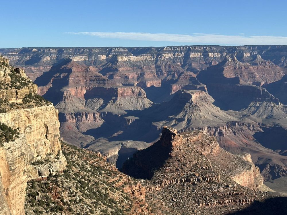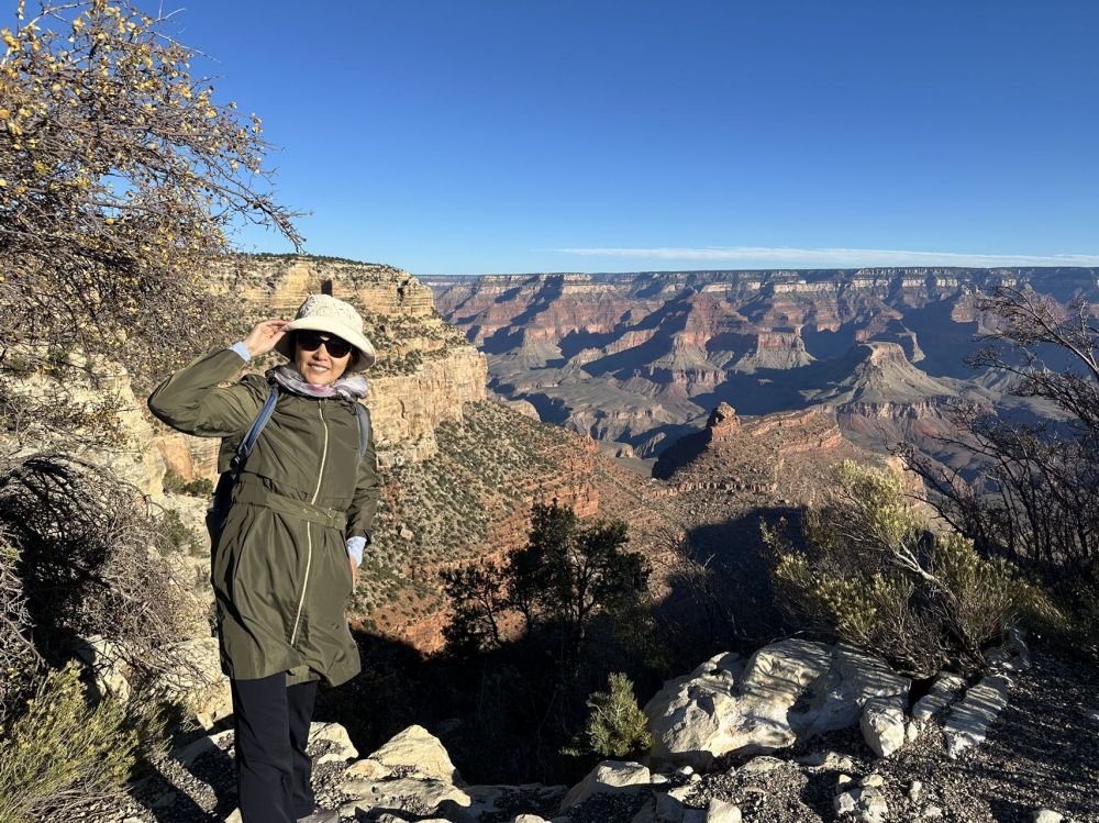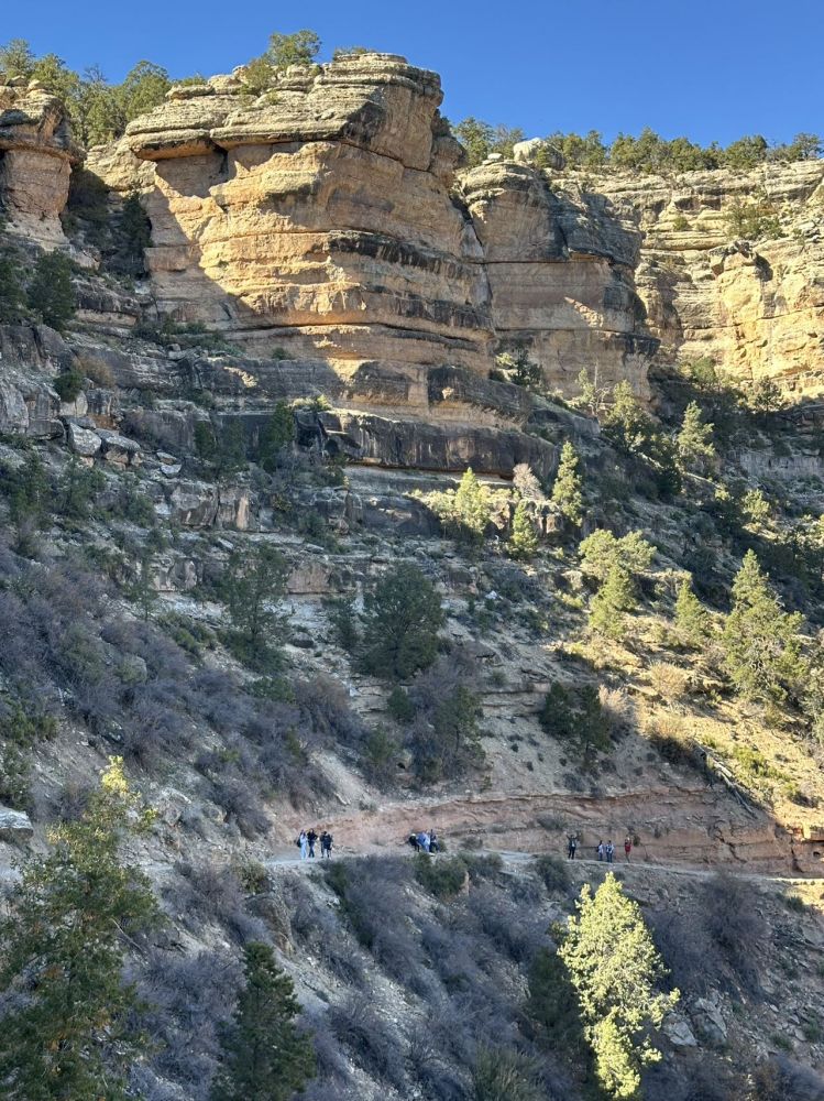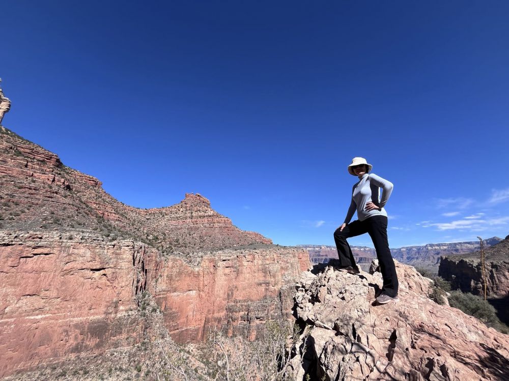 古人云:“欲穷千里目,更上一层楼。”如果同一位诗人与大峡谷相遇会不会说:“欲探百里深谷,且下三里崎岖!”第一天,看罢日出,吃完早餐,咱们完成了Bridget Angel Trail的三英里trail,a tremendous milestone!这基本上是徒步素人可以走的极限了,往返6英里/10公里,下降海拔高度650米左右。