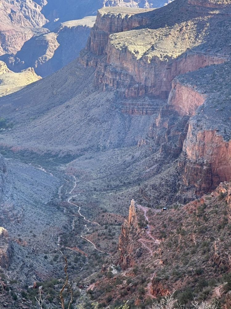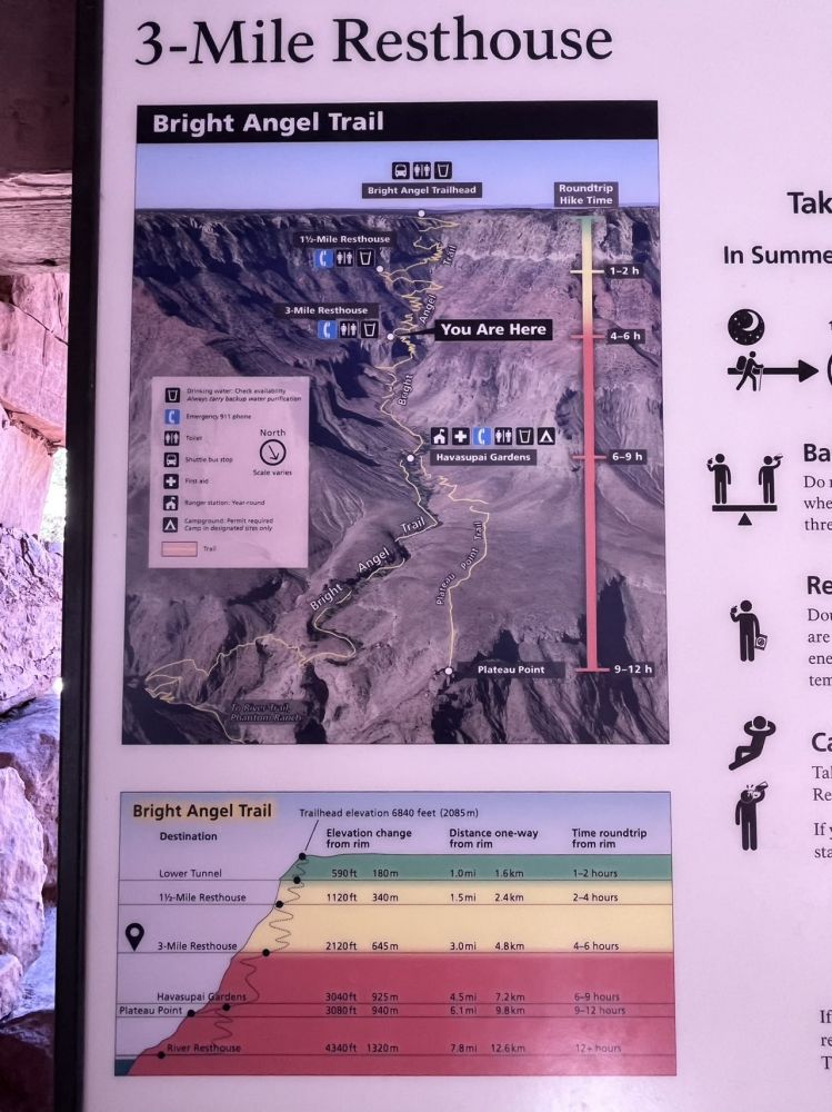 照片中间一个小房子/厕所,就是3英里处。前面崖底绿色的部分就是Indian Garden,我们应该完全可以走到那里的,哎呀呀!得,这成了新的梦想之地啦!