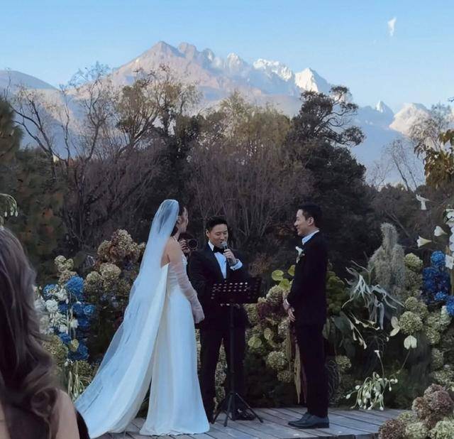 现在已经是11月中旬,云南的户外也并不保暖。两人的户外婚礼场地,设置在雪山的脚下。婚礼有雪山、有草坪,其中更设置了骑马、看表演等活动。