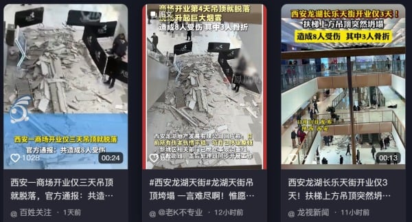 近日,西安龙湖长乐天街吊顶脱落致8人受伤,有网友指又一豆腐渣工程。