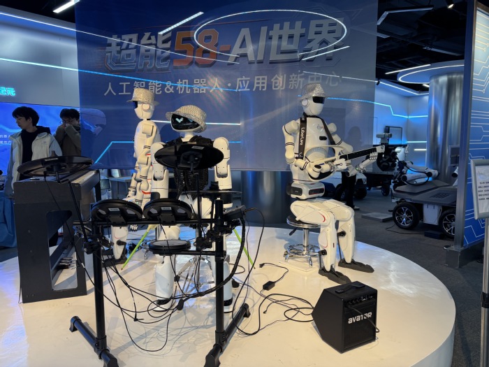 店内设有智慧康养、智能制造、智慧文教、智慧园区等多个场景功能展示区,打造沉浸式机器人场景体验空间:中医健康机器人现场把脉问诊、维修机器人现场打螺丝、脑机接口实现“意念”操控、机器人乐队奏响乐章、保洁机器人清扫园区、保安机器狗24小时巡逻……数字孪生系统实时同步机器人运行数据,管理人员一眼洞悉全貌。