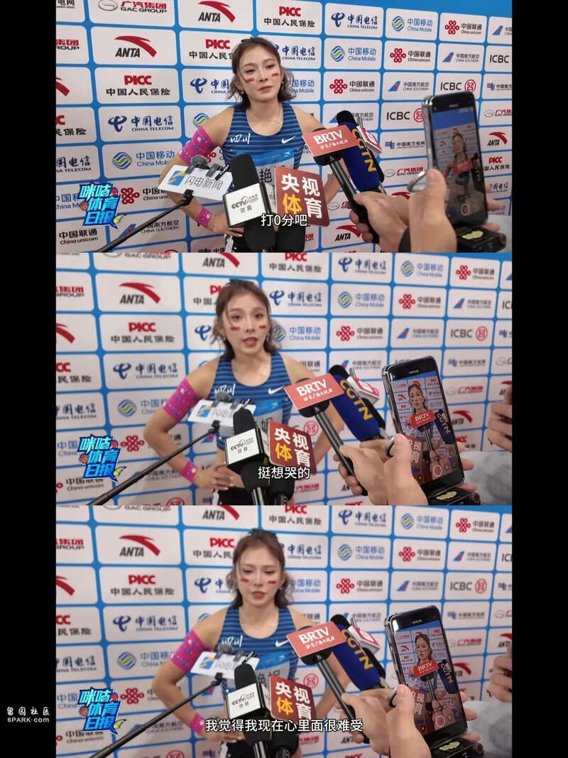 面对采访镜头,她哽咽着给自己打了0分:“没什么可说的,比差了就比差了,遗憾肯定是有的……挺想哭的,我觉得我现在心里挺难受的,我希望大家看到我的坚持和坚强。”