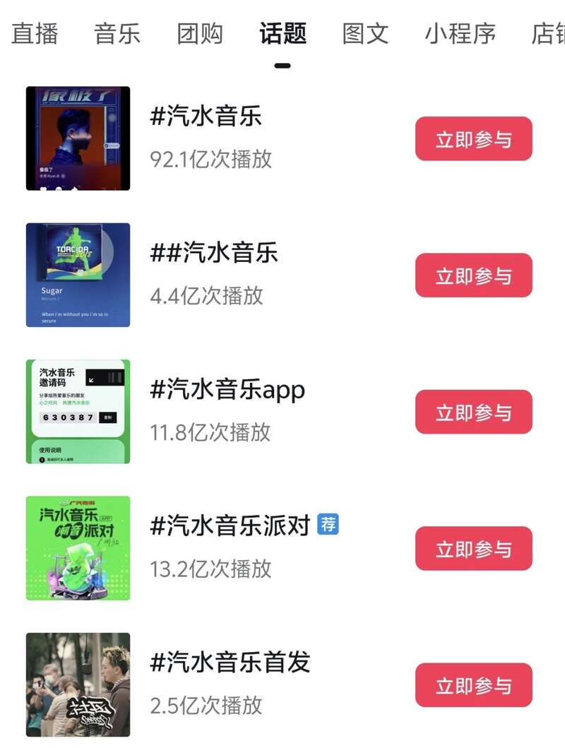 抖音平台上,#汽水音乐相关话题都有几十亿播放,可见字节有多宠。