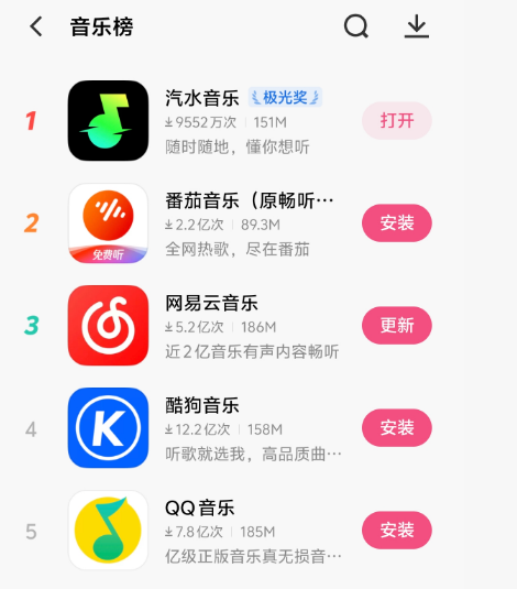 抖音靠短视频风口一飞冲天,豆包和红果也能靠字节的力量迅速破圈,而汽水音乐面对的,是一个已经被两大巨头深耕多年的成熟市场,其短板相当明显。