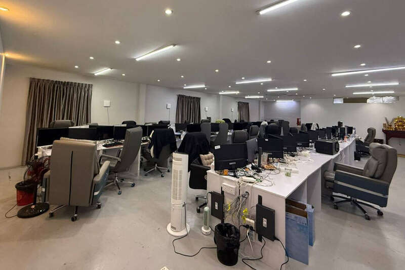 柬埔寨国家通讯社周四发布的一张资料照片显示金边某诈骗中心内的电脑设备。 Agence Kampuchea Press, via Agence France-Presse — Getty Images