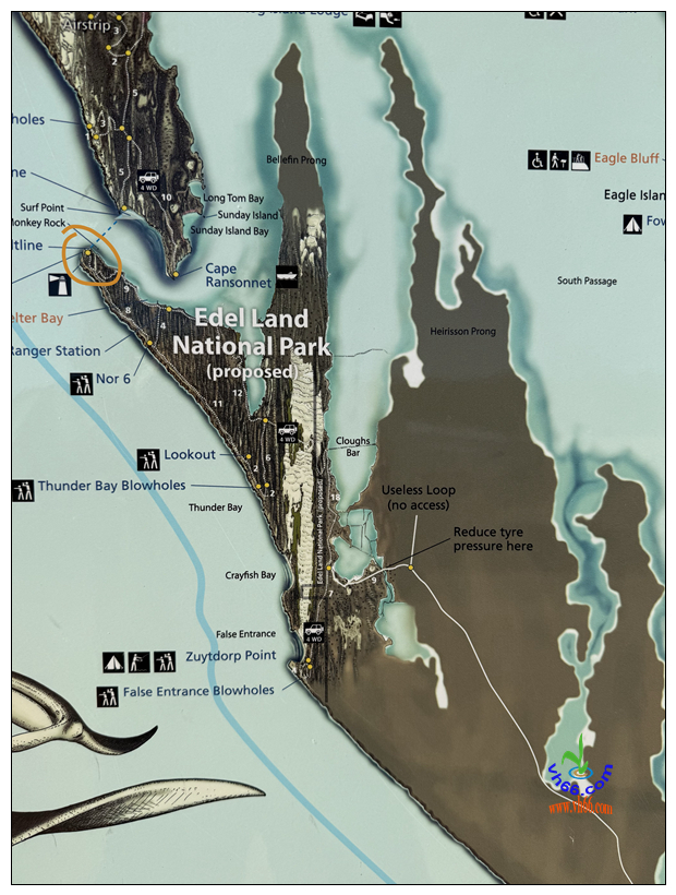 从国家公园的图标上看,Steep Point离开高速180公里,其中140公里土路,最后30公里为软沙子单行道。