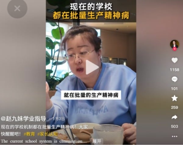 大陆抖音IP显示广东、有21年一线教学经验的博主“赵九妹学业指导”1月3日发布消息,直指“现在的学校机制都在批量生产精神病!大家快醒醒吧!”该博主说:现在的学校就是在“批量生产精神病,批量生产抑郁症,批量生产厌世的孩子!”