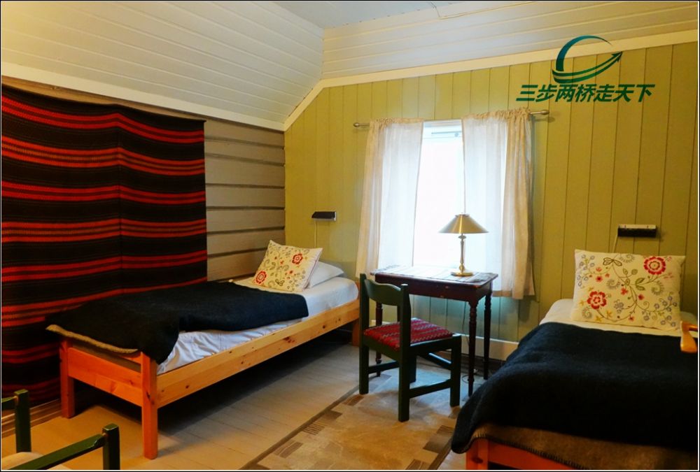 我一人入住的房间。每晚收费595NOK/人, 包早餐。