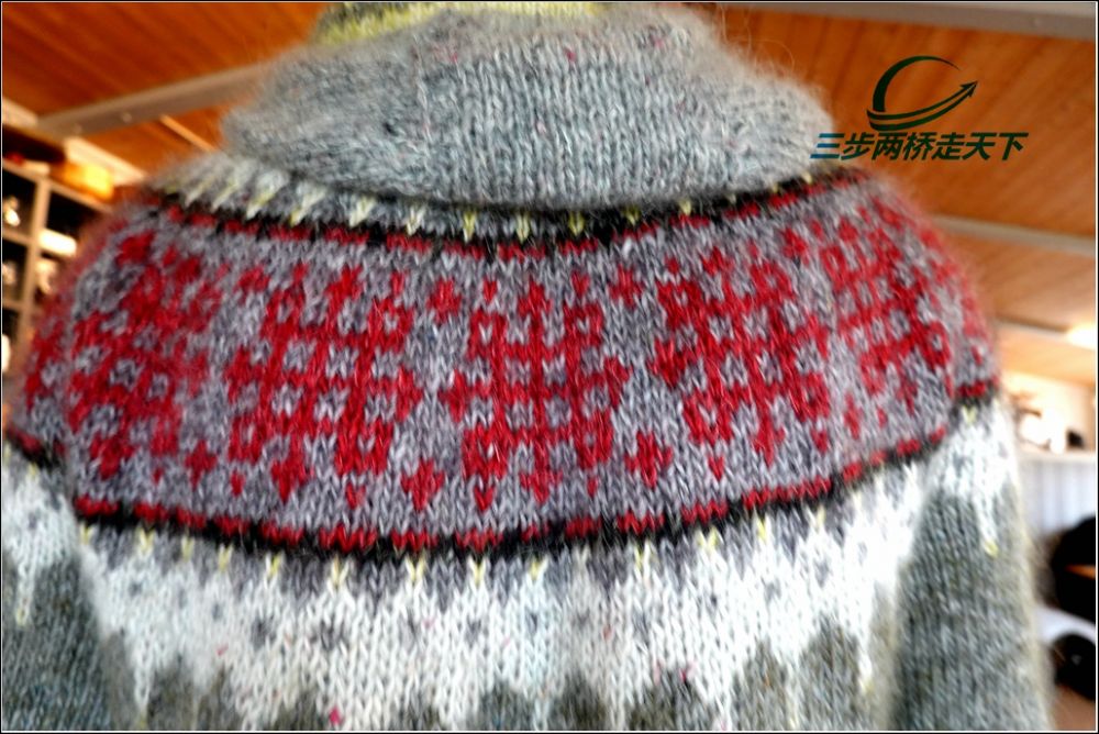 Julia自己织的带有圣奥拉夫之路路标图案的毛衣。