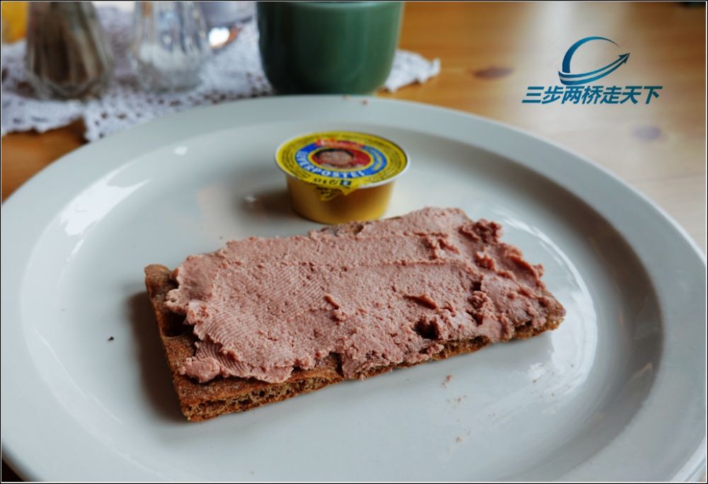 挪威特有的全麦脆饼和特有的鳕鱼肝酱。