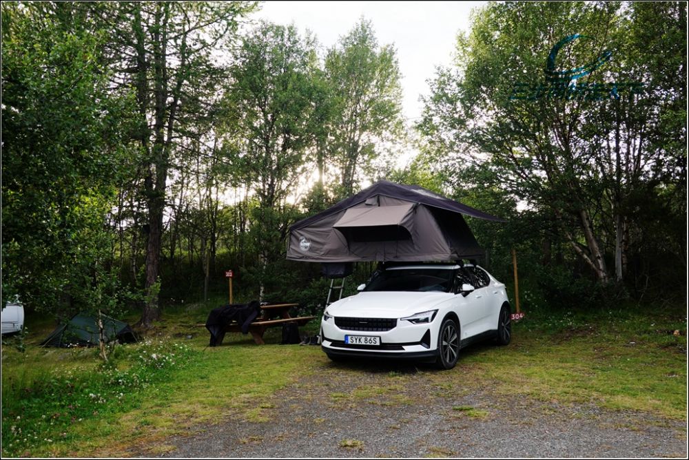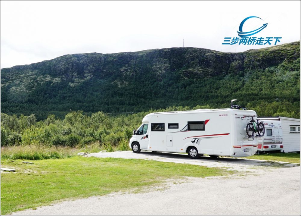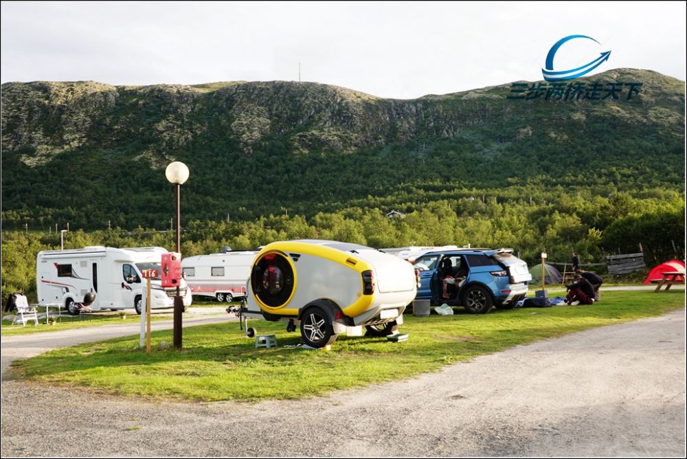 Sn?hetta Camping里停靠着各式各样的露营车。