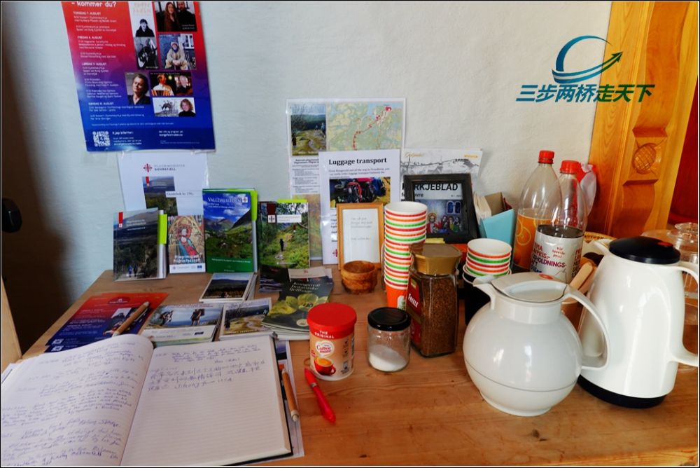 不久,其他几位路友也陆续来到餐厅。大家围坐在一张大桌旁,仿佛是一个不事张扬的旅人早餐会。昨晚自己搭帐篷露营的奥地利姑娘 Verena 和荷兰的 Karin 吃完自带的早餐后,也走进餐厅各自买了一杯咖啡,加入了我们的聊天。