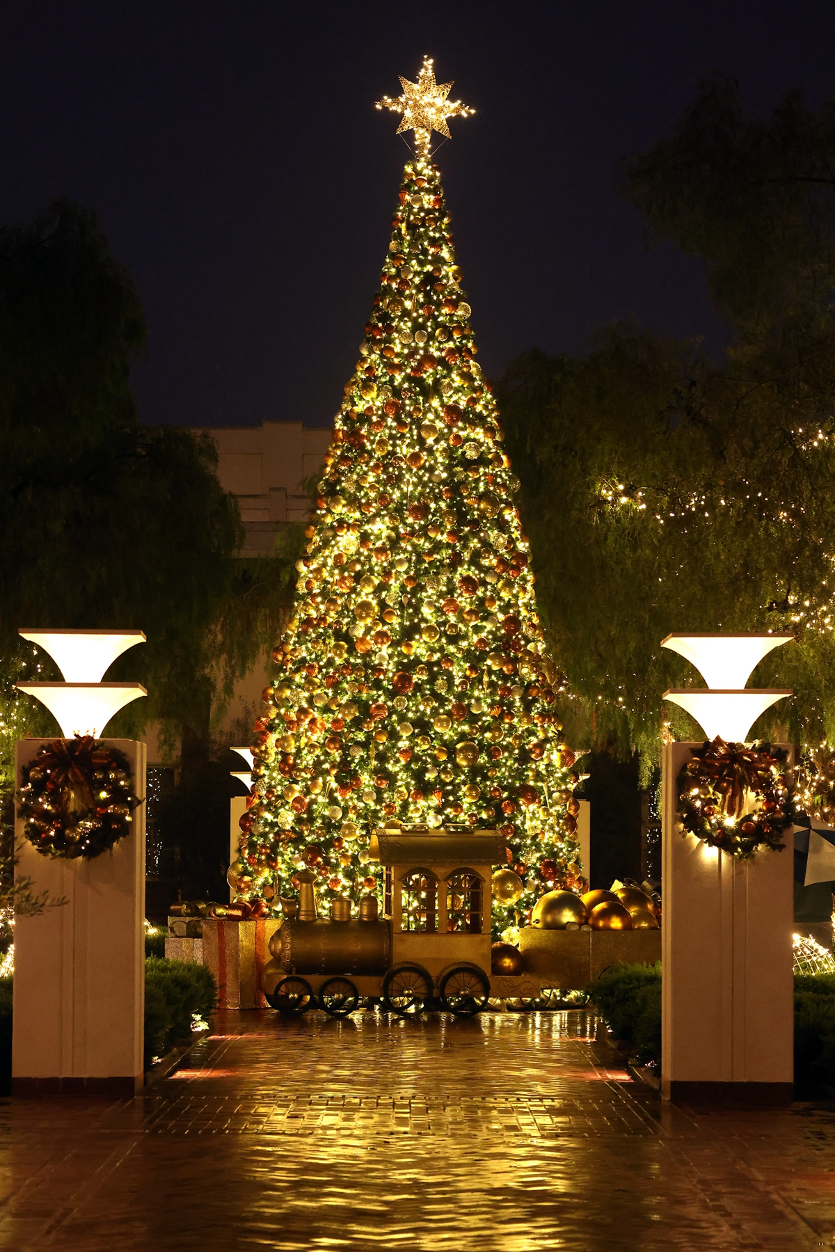 2025年11月20日,嘉宾参加在加州洛杉矶联合车站举行的圣诞树点亮仪式。(Tommaso Boddi/Getty Images for Los Angeles Union Station)2025年11月20日,在加州洛杉矶联合车站前,一颗巨大的圣诞树被点亮。(Tommaso Boddi/Getty Images for Los Angeles Union Station)