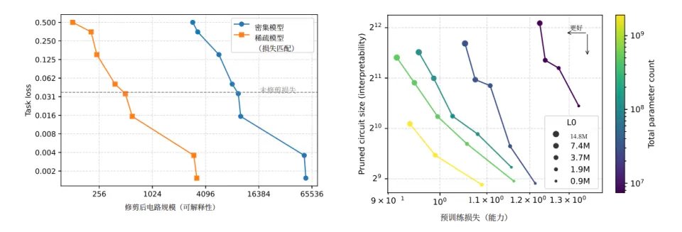当研究人员对比同样表现的稀疏模型和密集模型时,发现稀疏模型处理特定任务的电路体积,平均小了16倍。
