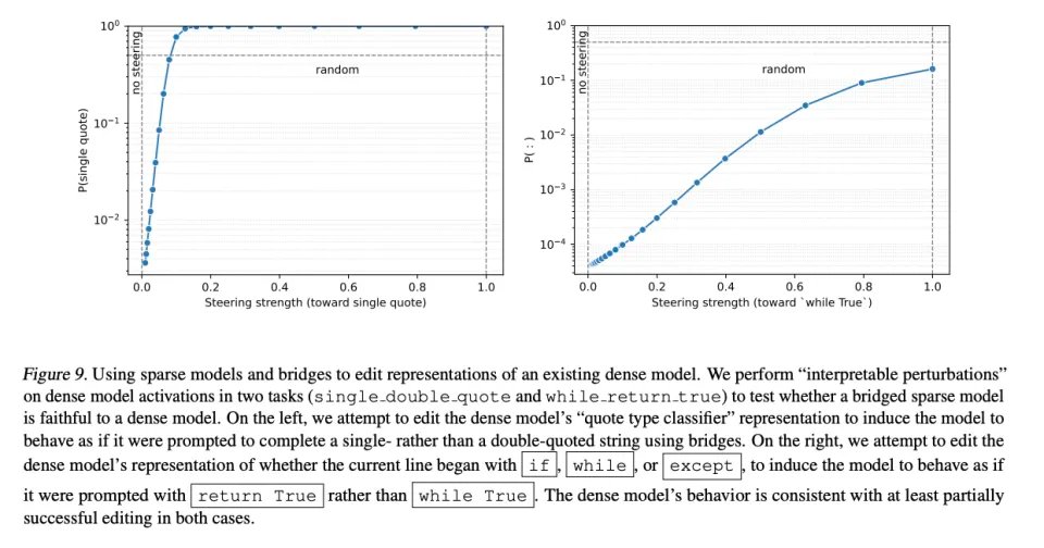 OpenAI 提出了一个B计划,虽然无法用可解释性稀疏模型去取代那些高效但不可解释的密集模型,但我们可以用桥接的方式造一个区域翻译器,只翻译其中一小部分。