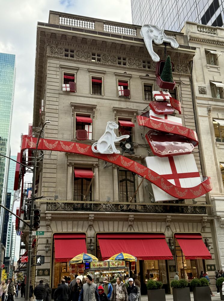 4. 洛克菲勒中心的圣诞树立起来了,但尚未挂灯;对面的Saks橱窗也待装饰。周围几家的橱窗已经摆好,这是美联社隔壁的“安家”。