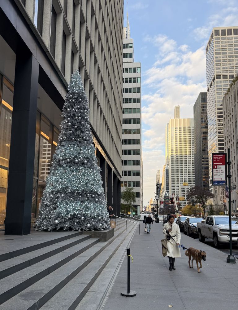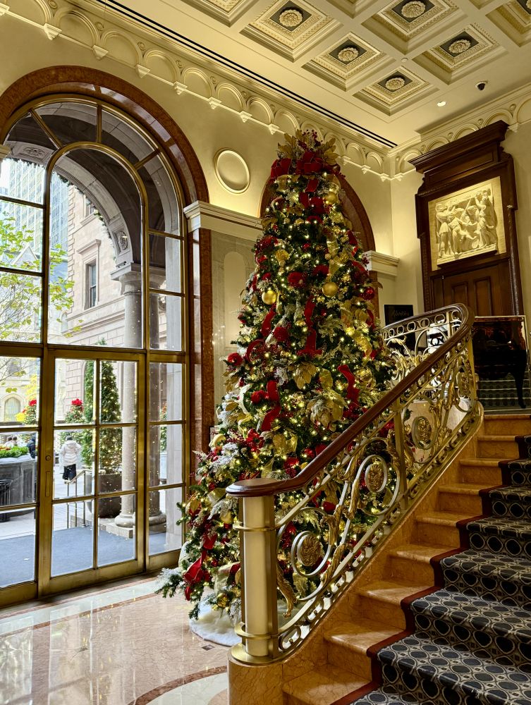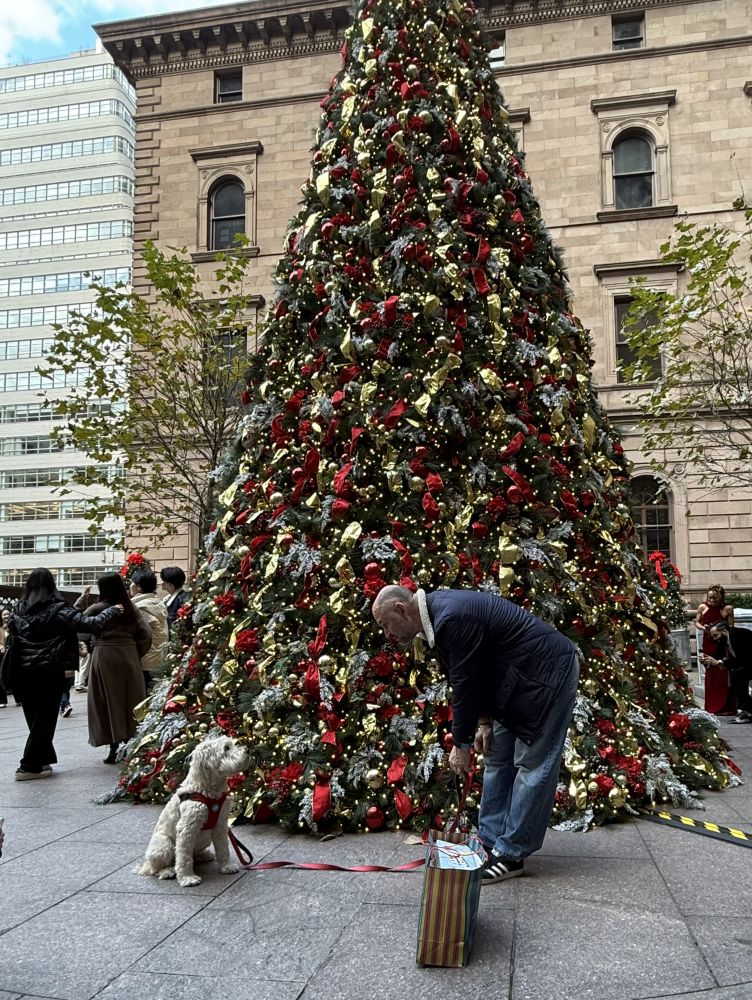 5. St. Patrick's 大教堂后面的五星酒店Lotte New York Palace中庭的圣诞树,是我每年的打卡之地。正面背面都是拍照的游人,绕到侧面吧,有人在训练他家可爱的狗狗摆姿势。后来还真拍成了。若是小米肯定不行,人一走开她就会跟着走。