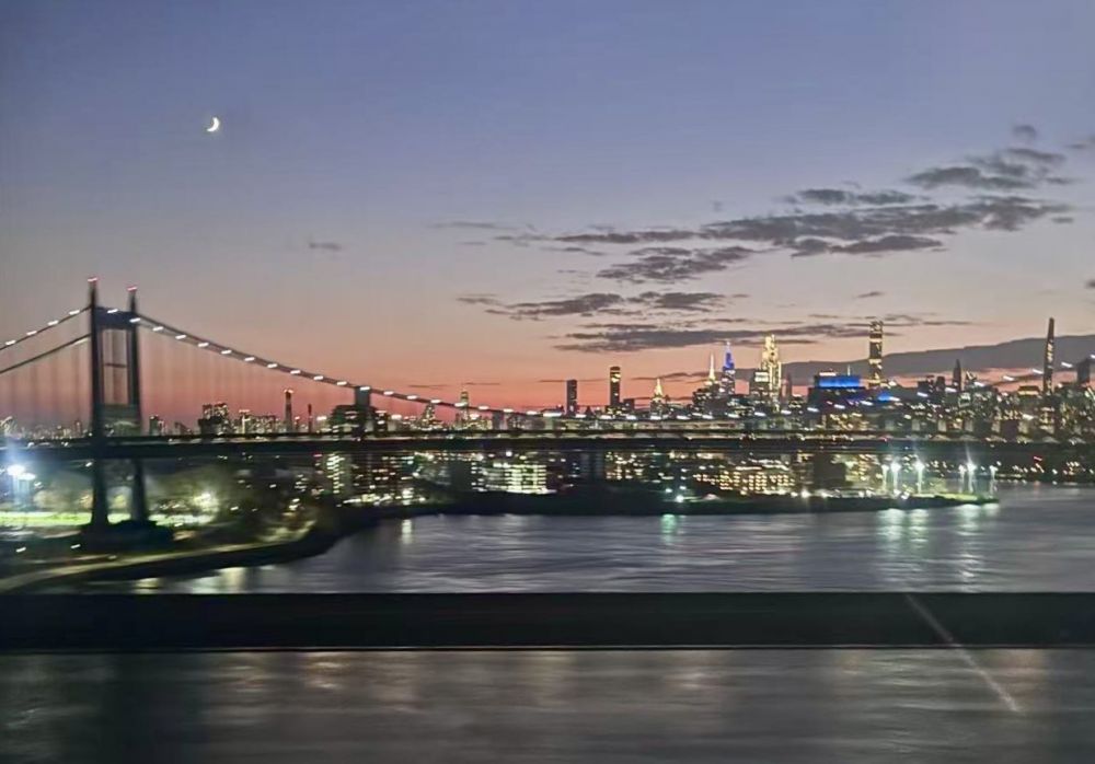 16. 火车出城时,小帅给我发来这张纽约美丽的黄昏。我坐在回家的巴士上,看着不同方向的曼哈顿,心想:2025就快过去了,小帅我们明年再见~~