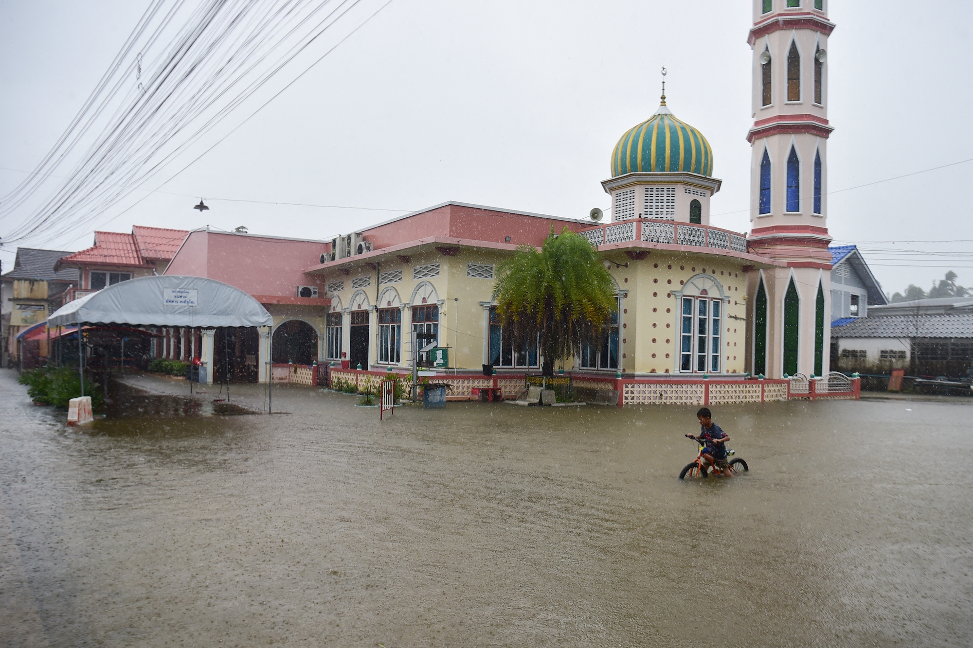 2025年11月25日,泰国宋卡府合艾市发生严重洪涝灾害,民众被迫乘船或涉水撤离被洪水围困的家园。(Arnun Chonmahatrakool/Thai News Pix/AFP via Getty Images)2025年11月25日,泰国南部那拉提瓦府(Narathiwat)一座清真寺被洪水围困,一名儿童在洪水中骑自行车。(Madaree Tohlala/AFP via Getty Images)2025年11月25日,泰国南部那拉提瓦府(Narathiwat)Mueang县Ban Yakang区发生严重洪涝灾害,当地儿童在洪水中游泳玩耍。(Madaree Tohlala/AFP via Getty Images)2025年11月25日,泰国南部那拉提瓦府(Narathiwat)Mueang县Ban Yakang区发生严重洪涝灾害,当地儿童在洪水中游泳玩耍。(Madaree Tohlala/AFP via Getty Images)2025年11月25日,泰国南部那拉提瓦府(Narathiwat)Mueang县Ban Yakang区发生严重洪涝灾害,当地一户民宅进水,屋主设法将家居用品放在高处。(Madaree Tohlala/AFP via Getty Images)2025年11月23日,泰国南部那拉提瓦府(Narathiwat)降下大雨,人们被迫涉水而行。(Madaree Tohlala/AFP via Getty Images)2025年11月23日,泰国南部那拉提瓦府(Narathiwat)降下大雨,一名儿童被迫涉水而行。(Madaree Tohlala/AFP via Getty Images)2025年11月23日,泰国南部那拉提瓦府(Narathiwat)降下大雨,人们在被水淹的市场焙买生活用品。(Madaree Tohlala/AFP via Getty Images)2025年11月23日,泰国南部那拉提瓦府(Narathiwat)降下大雨,当地居民用船只搭载在市场焙买的物品。(Madaree Tohlala/AFP via Getty Images)2025年11月23日,泰国南部那拉提瓦府(Narathiwat)降下大雨,当地居民在洪水中开车。(Madaree Tohlala/AFP via Getty Images)