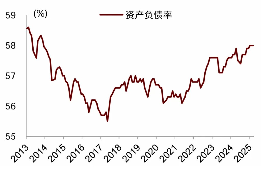 资产负债率环比持平。2025年10月末工业企业整体资产负债率58.0%,与2025年9月环比持平。