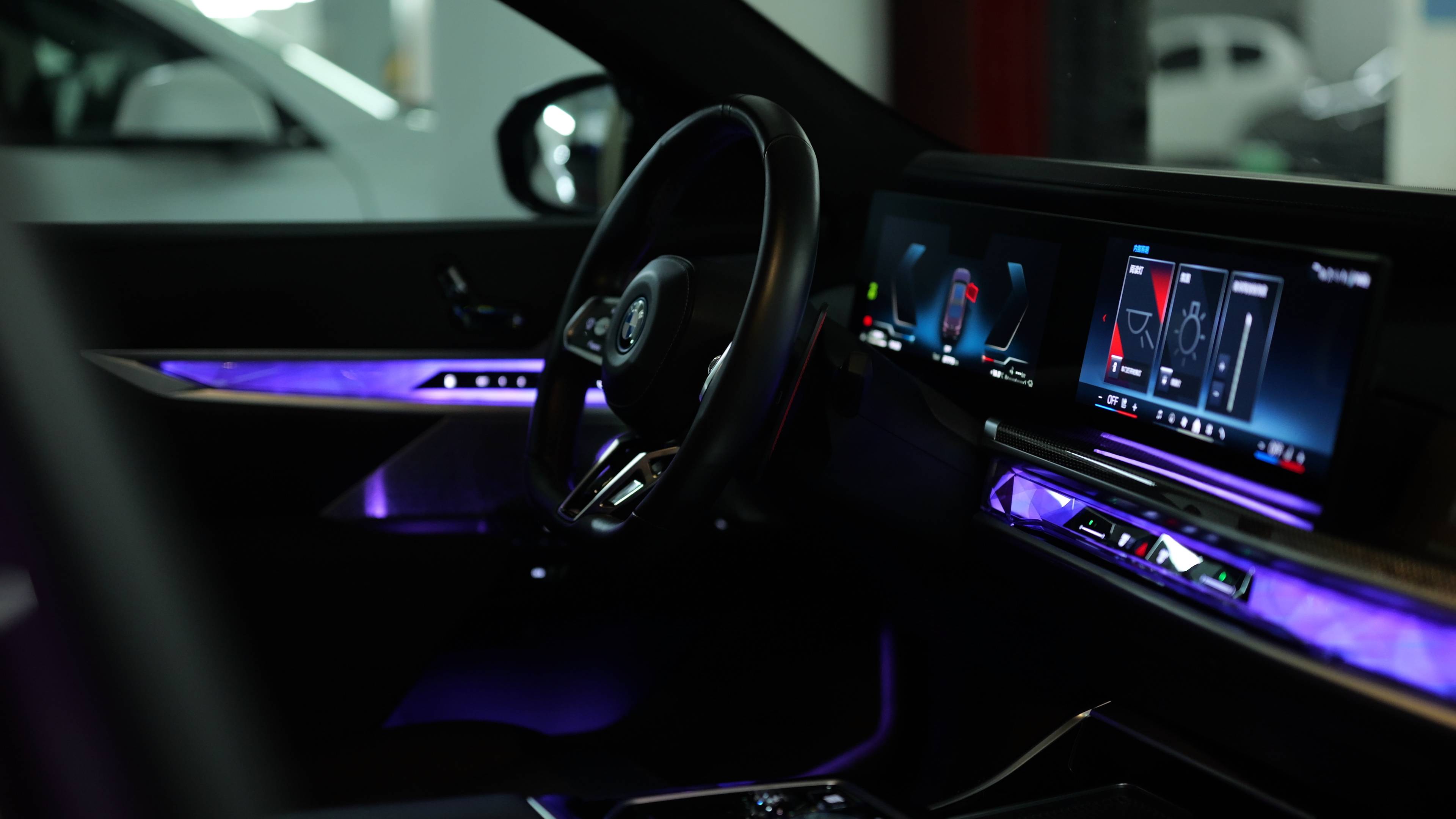 这代7系后排门板区域有一块小屏幕,可以控制每个遮阳帘,可以设置比专业会所模式更复杂的按摩功能,可以遥控这块尺寸巨大的后排屏幕。