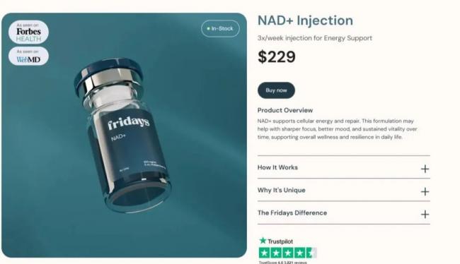 (网上还有卖NAD注射剂的,一小瓶230美元)