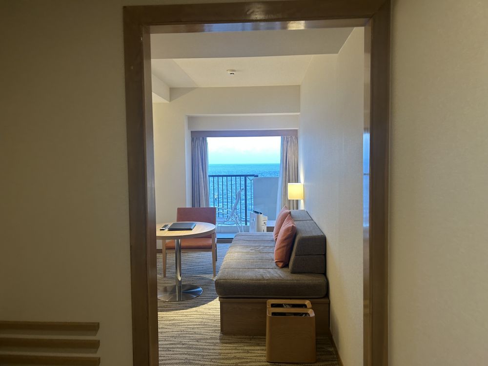 房间小了点,也有阳台看海景。