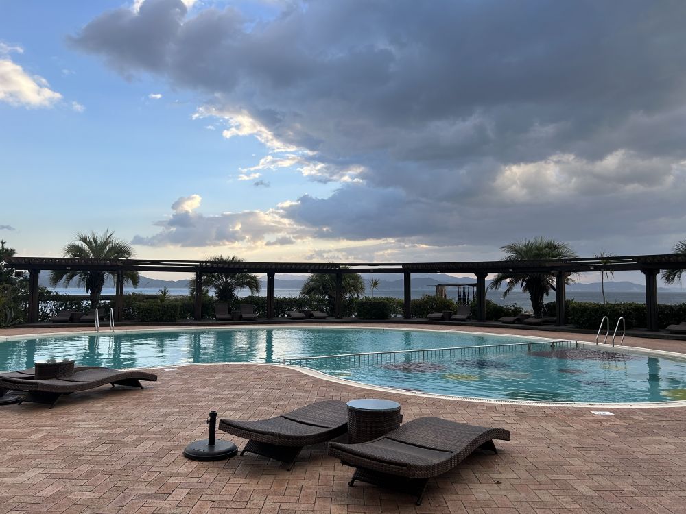 宾馆有游泳池 细沙滩,温泉美食,老少三代都可以找到各自的乐趣。
