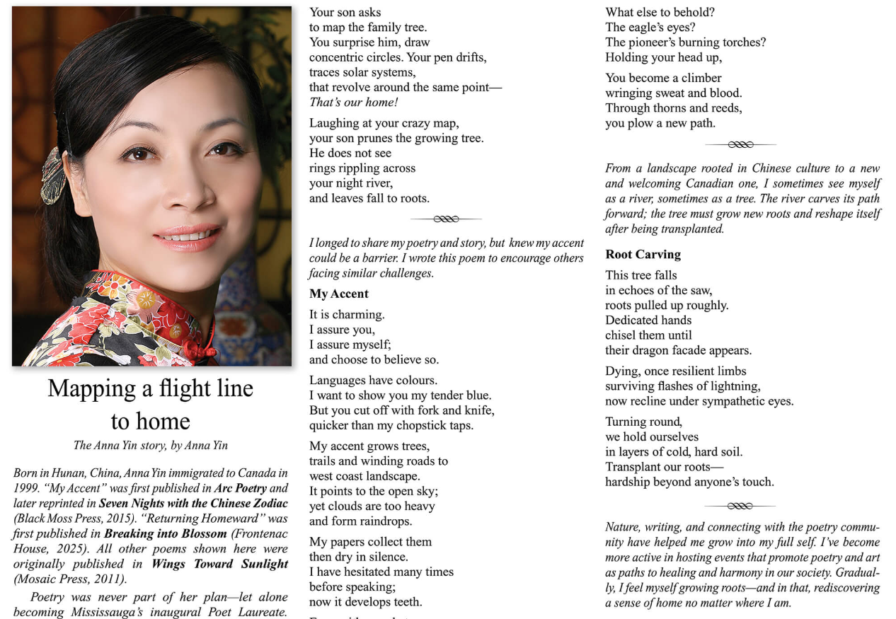 展览还呈现了像Anna Yin(星子)这样的声音。她出生于中国湖南,初到加拿大时因英语和口音困难重重,但最终成为获奖诗人,其经历反映出许多新移民展现出的坚韧与自我重塑。