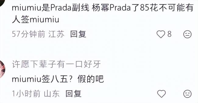 最近还传出一个85花要签约miumiu的热搜,因为她近期频繁穿miumiu活跃,很多人猜到了她头上,但这看似是好饼,实则是掉咖。