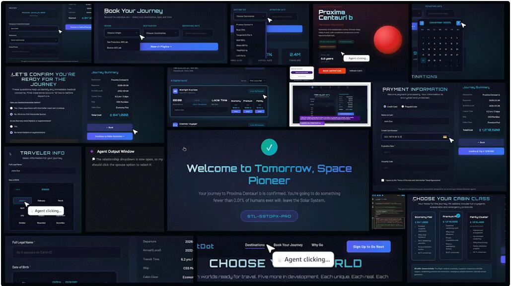 Nova Act通过强化学习训练定制的Nova 2 Lite模型,在数百个模拟网络环境中运行数千项任务,从而实现突破性可靠性。这种训练方式使Nova Act在基于用户界面的工作流程中表现出色,例如更新客户关系管理系统中的数据、测试网站功能或提交健康保险索赔。