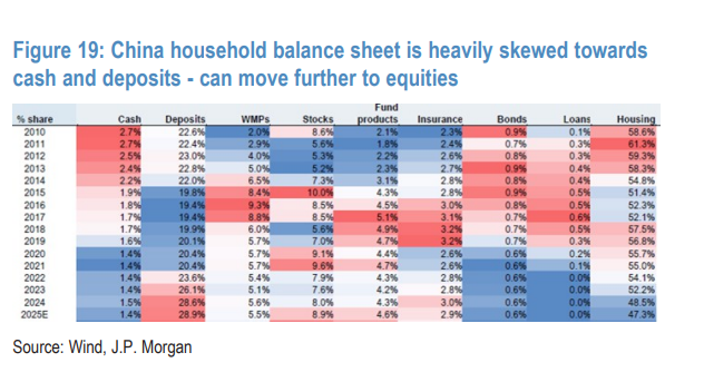 此外,一个更值得关注的长期趋势是国内资金的流向。报告指出,中国家庭资产配置正出现从现金和存款转向权益类资产的早期迹象。