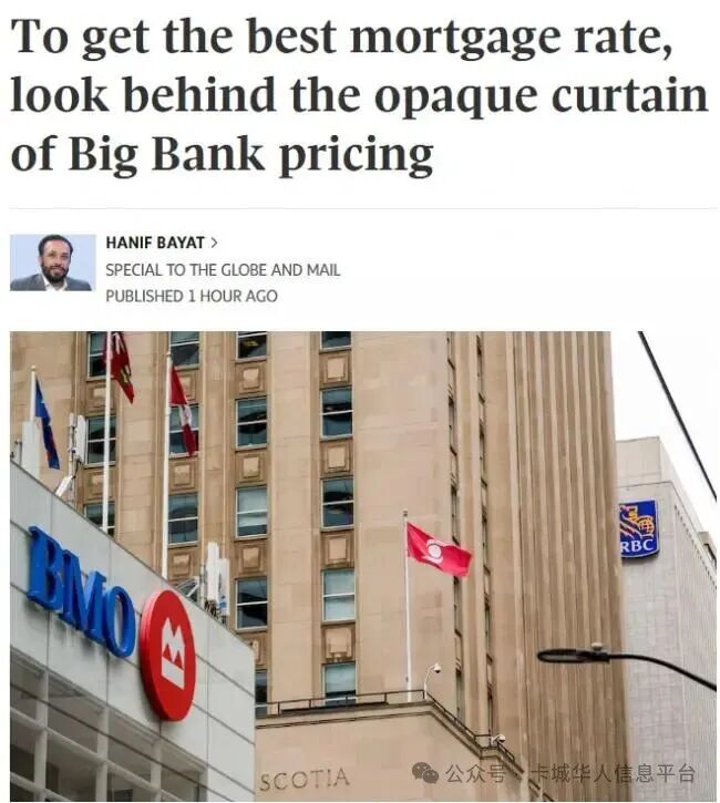 加拿大六大银行——加拿大皇家银行(RBC)、多伦多道明银行(TD)、丰业银行(Scotiabank)、蒙特利尔银行(BMO)、加拿大帝国商业银行(CIBC)和加拿大国家银行(National Bank)——控制了超过 70% 的住宅按揭市场,但它们很少公开向优质借款人提供的最低利率。它们宣传的利率通常远高于客户实际获得的利率。