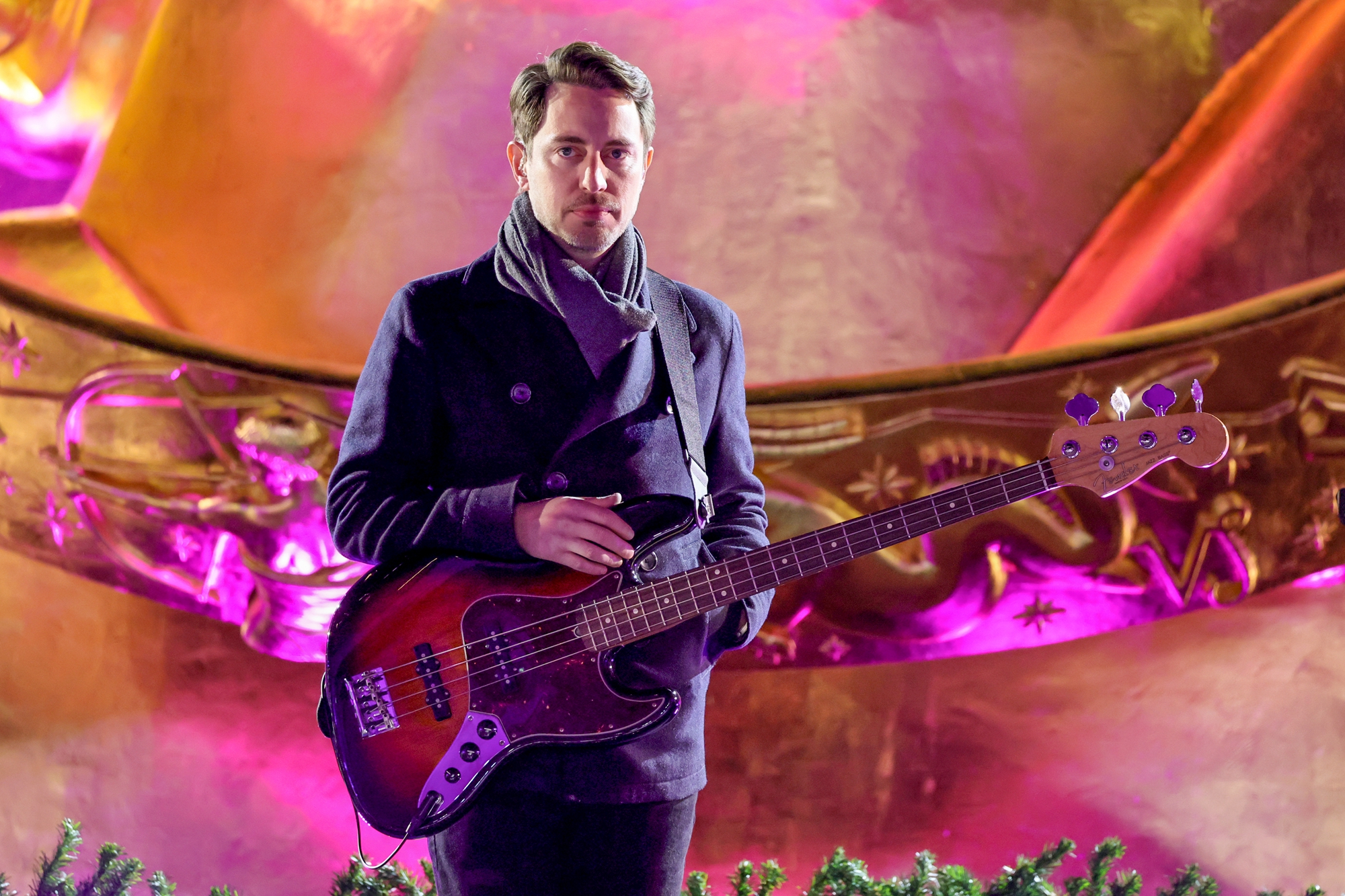 2025年12月3日晚,美国纽约洛克菲勒中心行一年一度的圣诞树亮灯仪式,美国音乐家迈克‧基亚瓦罗(Mike Chiavaro)在台上演出。(Theo Wargo/Getty Images)2025年12月3日晚,美国纽约洛克菲勒中心行一年一度的圣诞树亮灯仪式,美国新版本合唱团(New Edition)在台上演出。(Charly Triballeau/AFP via Getty Images)