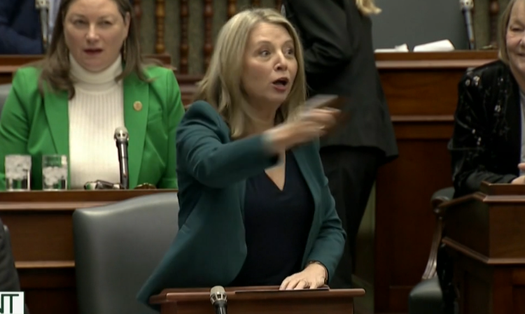 就在几个街区之外、且仅早一个小时,安省省议会内,NDP领袖Marit Stiles正在质询时间中抨击福特政府对25亿加元技能发展基金(Skills Development Fund)的管理。