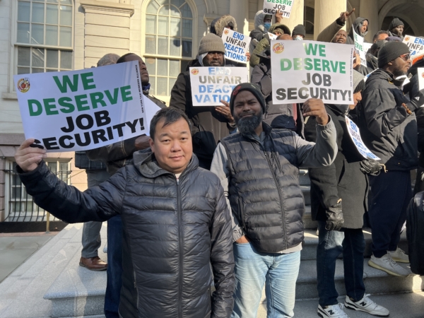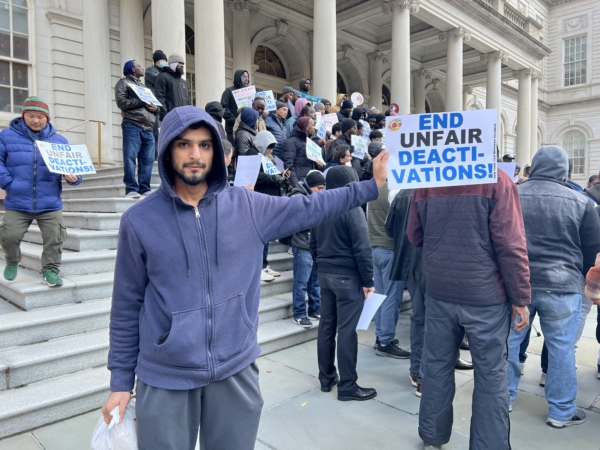12月4日,超过200名纽约网约车司机、工会成员与市议员在市政厅台阶前再次集会,呼吁立即通过保障司机避免被不公平停工的第276号立法提案。该提案规定,Uber和Lyft不得无故解雇司机,并保障司机有合法的申诉途径。