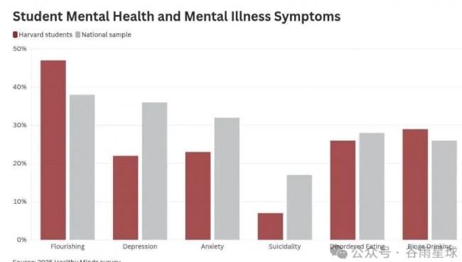 哈佛校报2025年最新调查,经历心理问题的学生比例非常高。