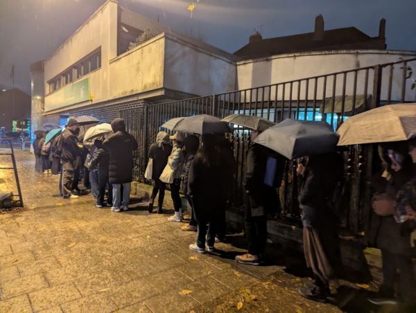 英国港侨协会昨晚(5日)在伦敦市中心Waterloo一个社区中心举行悼念会,主办方公布总共有约3000人参与。本报记者在现场臂察,高峰期场外人龙长达200米,约有500人冒着8度低温和毛毛雨排队等候进入会场。有大埔旧街坊直言火灾反映香港整个制度的崩坏,事件与长期存在的围标问题有密切关系。
