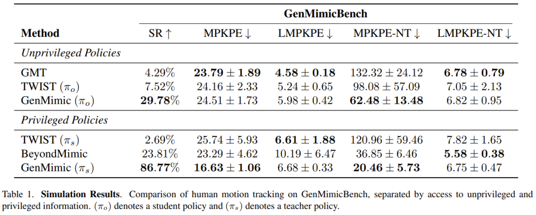 该团队在 GenMimicBench 数据集上对比了该团队的方法与强基线模型。结果见表 1。