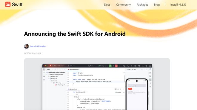 今年的 10 月 24 号,苹果的 Swift 编程语言发布了面向 Android 平台的 Swift SDK ( 软件开发工具包 )预览版。
