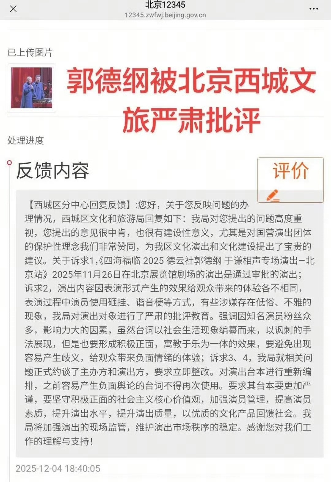 首先,西城文旅确认,11月26日的德云社北展专场确实通过了审批,符合演出流程要求。