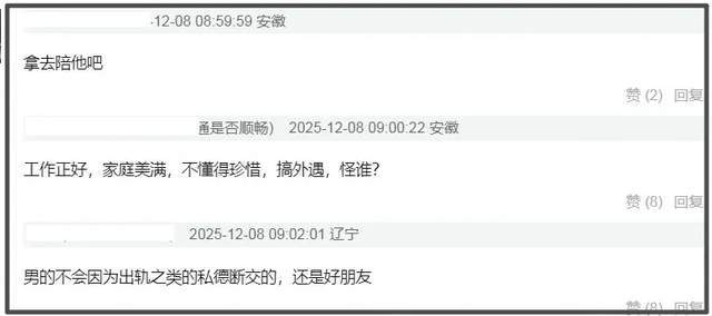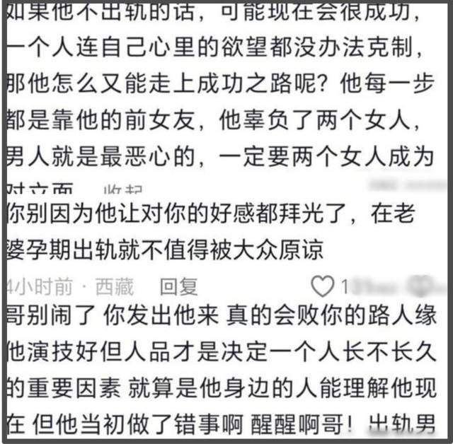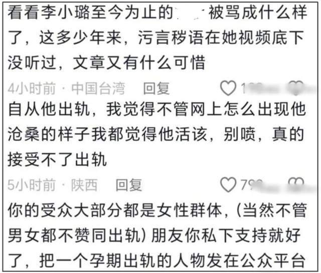 该文发布后,评论区立马引起争议,许多网友声讨他的行为,认为他不尊重自己的女性受众(他现在在带货美妆),不应该支持孕期出轨的文章。还拿李小璐对比,称李小璐至今仍然承受较大的舆论和污言秽语,质问文章有什么值得可惜。