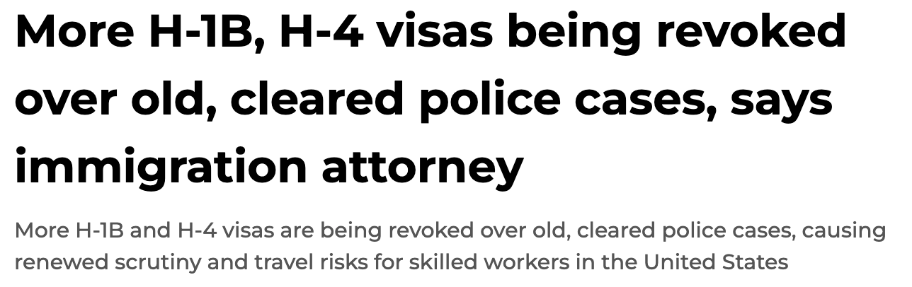 “我们正看到越来越多的H-1B和H-4签证因过去与执法部门的接触而被撤销,即使从未定罪。”——移民律师Emily Neumann近日在社交平台X上的警示,迅速在科技圈引发广泛关注。